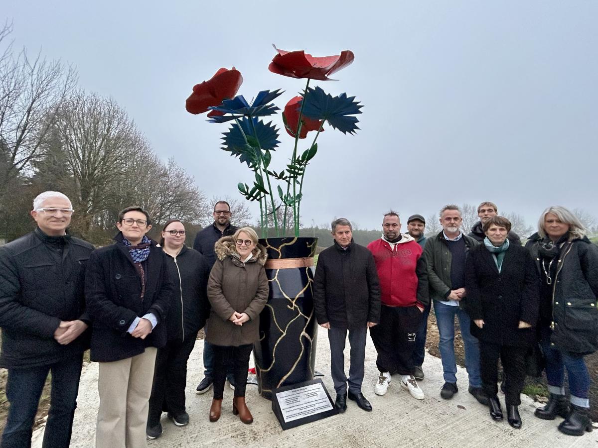 Noël Bourgeois, Président du Conseil départemental des Ardennes, a inauguré l'Œuvre de la paix, en présence de Pascale Gaillot, Conseillère régionale représentant Franck Leroy, Président de la Région Grand Est, et de Mathilde Benoit-Girgenti, Directrice Ardennes du Pôle Formation UIMM.